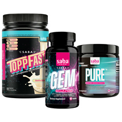 GLP-1 Nutrition Support System – Featuring Saba GEM (one 60-count bottle), Saba ToppFast (one 30-serving Vanilla), and Saba Pure Creatine Monohydrate (one 90-count Canister).